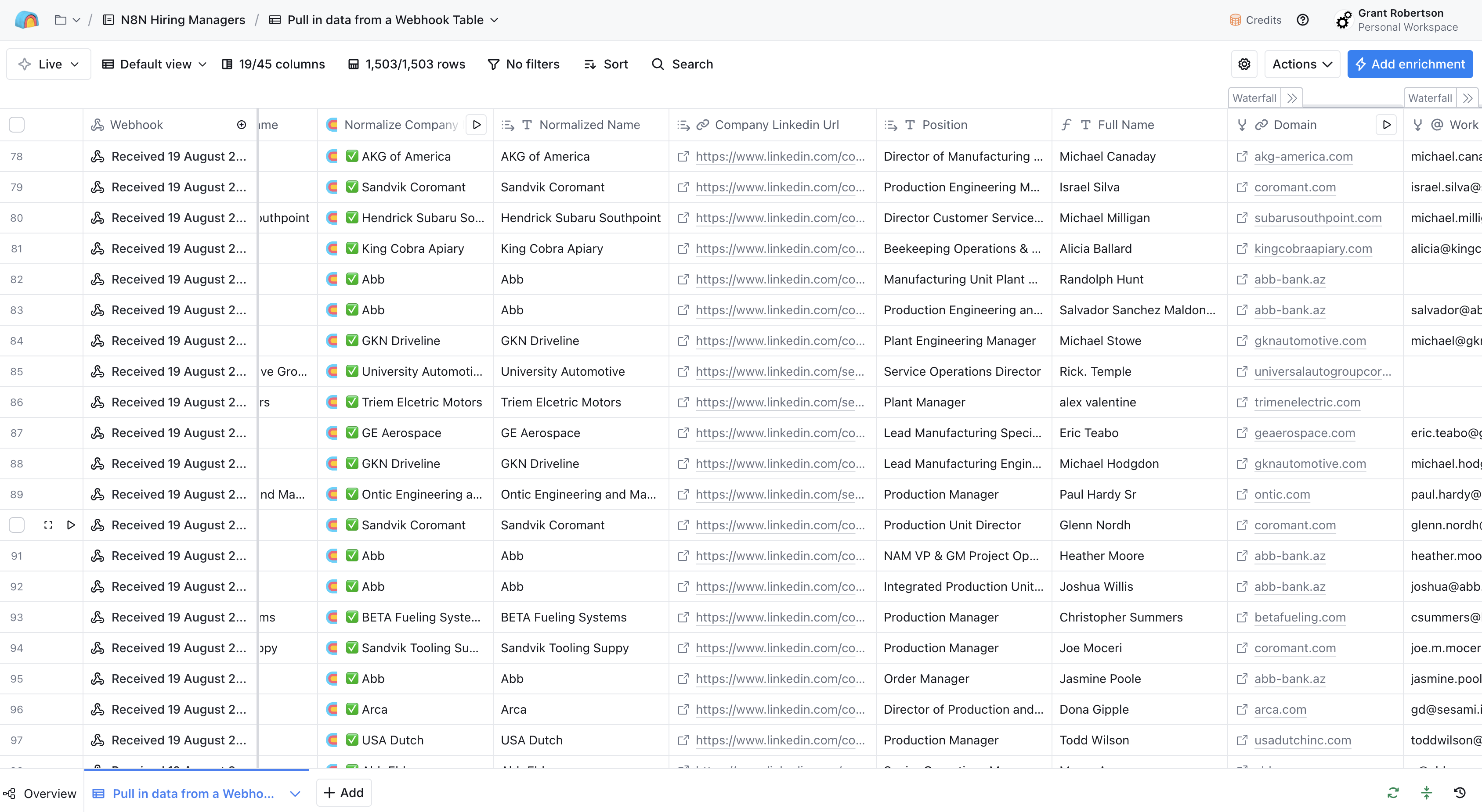 For modern recruitment, use it to build hiring-manager universes, refresh candidate data, add verified emails/mobiles, generate role-specific hooks, and route qualified records into Instantly/Aircall/Recruiterflow—while de-dupe, sequencing, and QA rules run behind the scenes.