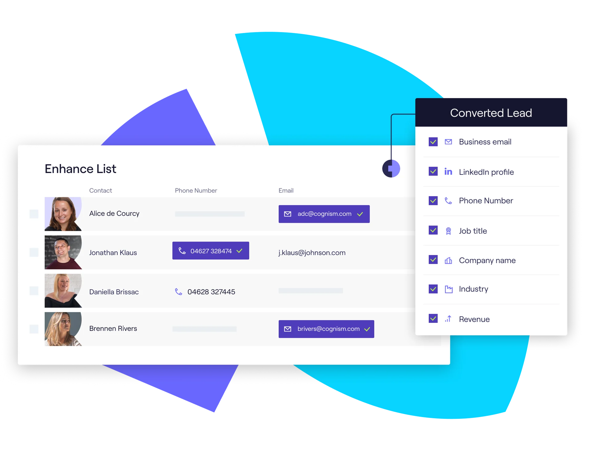 Cognism is a compliant B2B data and enrichment platform that gives teams accurate people and company records with direct dials. Pull phone-verified mobiles, emails, firmographics, and hiring signals via Chrome extension, list builder, or API; de-duplicate, segment, and sync automatically. It tracks coverage, match rates, enrichment success, intent/topic uptake, connect rates, and credit usage with clear audit trails.